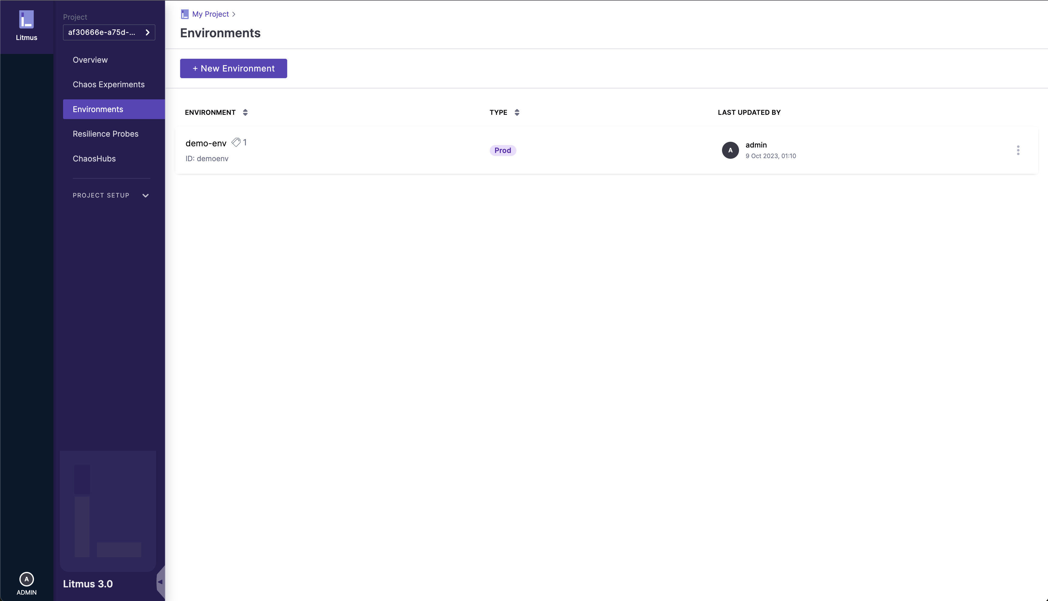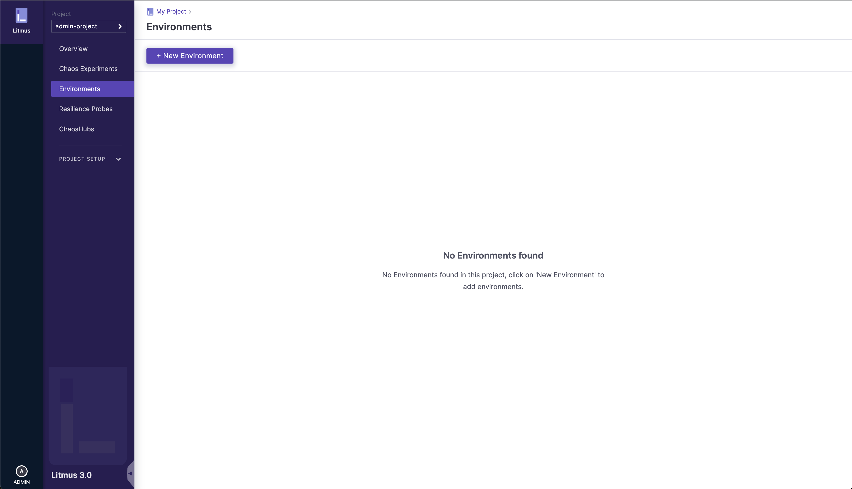 Navigate to the /environments page (Environments sidebar option on the left nav), and click on the New Environment button
